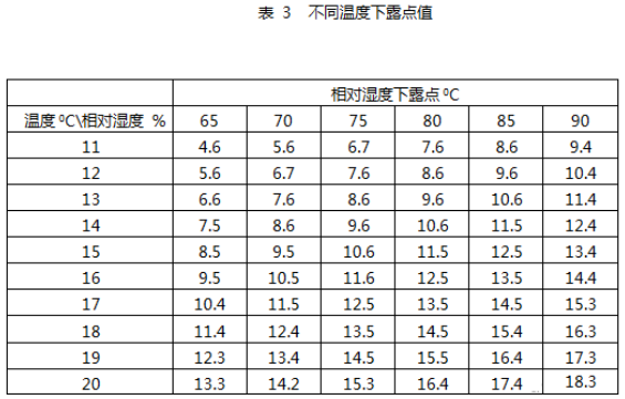 考慮到該設備安裝在澳大利亞近海區域,且該熔斷器為客戶自行配置,現場安裝,安裝季節也是在夏天濕度大,相對濕度下露點如表3。