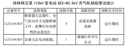 桂林網(wǎng)區(qū)某110kV變電站現(xiàn)有的GZX-40.5kV充氣柜缺陷頻發(fā),根據(jù)運(yùn)行值班人員提供的數(shù)據(jù),該型號(hào)充氣柜僅2012~2013期間發(fā)生缺陷次數(shù)及實(shí)際缺陷部位(表所示)