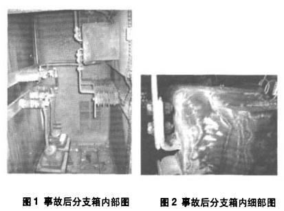 2007年7月18日某地輸配電線路發生跳閘,在巡線至石板坡電纜分支箱時,發現電纜分支箱兩端的開關柜俑壁發生嚴峻變形、601進線開關柜面板有飛弧、放電及炭黑等現象。外觀上,箱體內水跡明顯。表面柜門已銹死,不得不撬開,操作安排已無法翻滾、只能將其潰散后翻開關柜門。翻開#601開關柜電纜室發現:計量TⅣV的熔斷器及支撐絕緣子兩相悉數炸碎、另一相熔斷器發生分裂,支撐絕緣子發生破損,AT表面有爬電痕跡,柜體多處存在放電痕跡,如圖1所示。翻開相鄰距離查看,情況相同嚴峻,導電部分受潮嚴峻,銅排及固定鏢栓已長鹵銹,柜體表面有多處爬電痕跡,見圖2。該分支箱為某電器廠制造,2003年投運、僅3年多。