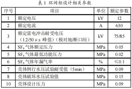 環網柜殼體外形不同有箱式和筒式之分。由于箱式構造有利于完成進出線.配電計劃的實施,但是箱式在接受壓力的局限性,使箱體不可以接受太高的壓力。下面引見一種環網柜氣箱的規劃方法。與氣箱規劃有關的環網柜額外參數見表1。