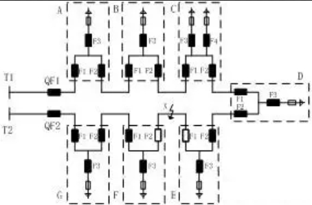 一般由3個間隔組成,包含兩個進出線間隔和變壓器間隔。進出線間隔主要用于缺點線路的隔絕,以及通過調整電源方向來康復正常供電。變壓器間隔則通過組合電器來對變壓器內部短路缺點進行快速切除。